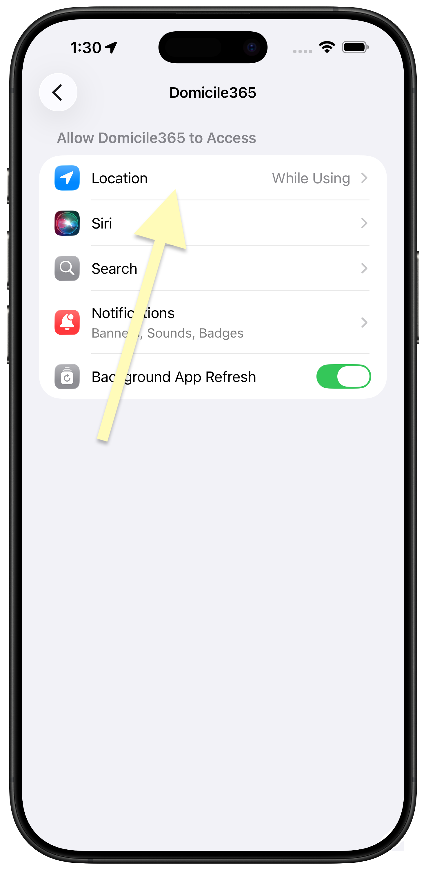 How to Set Up Your Domicile365 iPhone Location Permission Settings